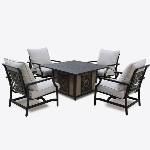 ריהוט פטיו חיצוני מודרני סט עם שולחן בור אש סוויטה לחומרי מתכת חצר